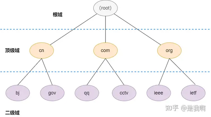 DNS主要工作机制是将主机域名转换为IP地址,DNS 域的本质是一种管理范围的划分,最大的域是根域,向下可以划分为顶级域、二级域、三级域、四级域等。相对应的域名是根域名、顶级域名、二级域名、三级域名等。不同等级的域名使用点号分隔,级别最低的域名写在最左边,而级别最高的域名写在最右边。