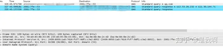 后续还可以通过Wireshark抓包分析是否被劫持,当被劫持时,应该只有三个数据包:1、用户发起DNS请求(一般由所设DNS代发),2、劫持方直接抢答解析记录,3、劫持方抢答根NS记录。
